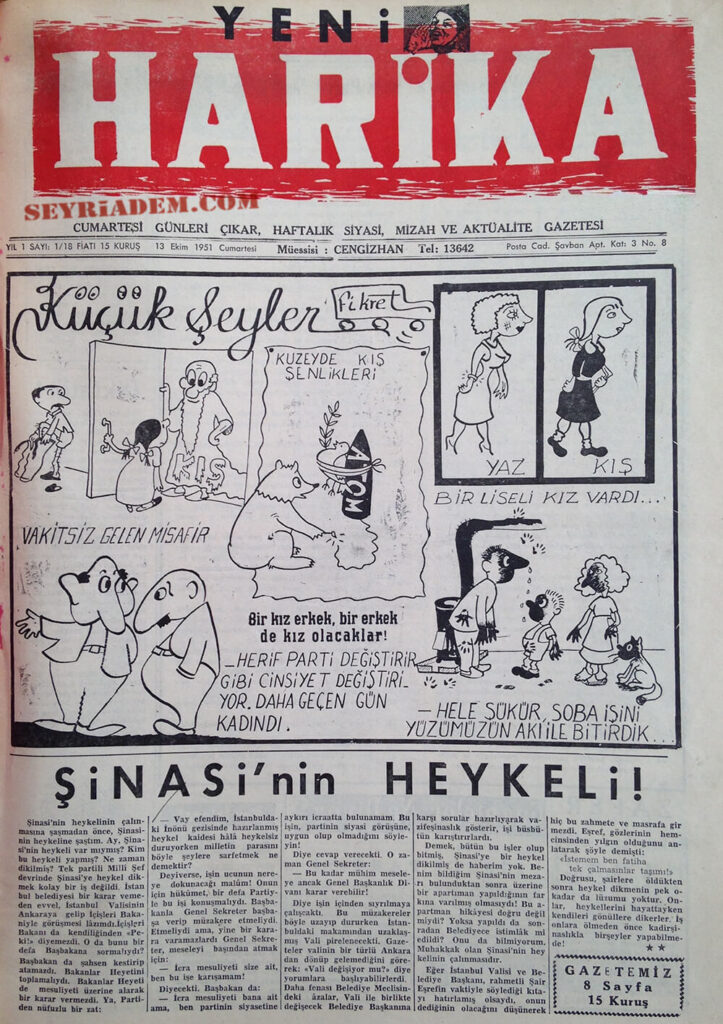 Pazartesi, Perşembe günleri çıkar siyasi, mizahi halk gazetesi. Sahibi ve yazı işlerini fiilen idare eden Mithat Eriş’dir. 1 Mart 1948 tarihinde yayın hayatına başlayarak 1950’li yıllarda yayımlanmıştır. Gazetede yayımlanan karikatürler imzasız olarak yayımlanmıştır. Karikatürler olgun bir çizgiye sahiptir. Mevcut sayılardan Demokrat Parti yanlısı yayın yaptığı anlaşılmaktadır. İç ve dış siyaset konularında karikatürlere yer verilmektedir.