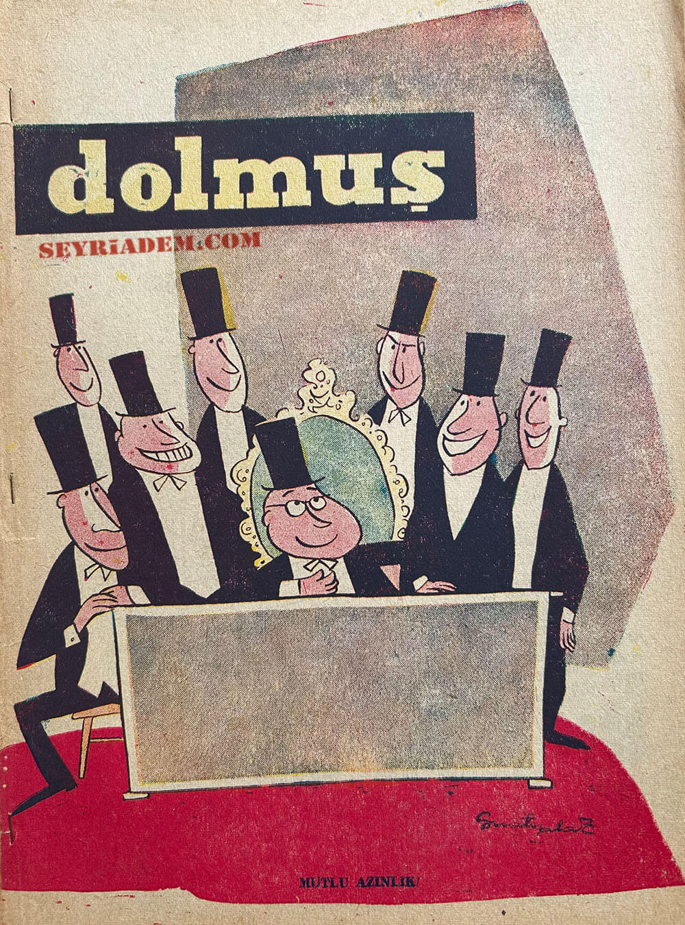 Türk karikatürünün birçok önemli çizerlerinin erken dönem karikatürleri Dolmuş mizah dergisinde yayımlanmıştır. Bu çizerler aradında Turhan Selçuk, Ferruh DOĞAN, Ali Ulvi ERSOY, Tonguç, Oğuz ARAL, Eflatun NURİ, Mustafa EREMEKTAR (MISTIK) ve Sinan BIÇAKCIOĞLU bu çizerler arasındadır. Ayrıca, Bedii FAİK’in yazıları da dergide yer almıştır. Orta sayfada Oğuz ARAL ve Turhan Selçuk’un iki tam sayfa panorama karikatürleri de etkileyicidir. Dolmuş, toplam 139 sayı yayımlanmıştır. Derginin 98 nolu sayısı 98. sayının kapağı nedeniyle yayımlanamadan toplatılmıştır.